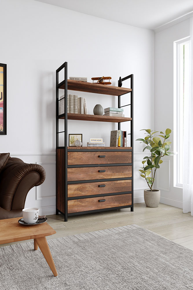 Bu şık kitaplık, tek parça yapısı ve demonte olmayan tasarımı ile kullanım kolaylığını ön planda tutuyor. Demir iskeleti, çizilmez elektrostatik toz boya ile boyanması, uzun ömürlü şıklığı garanti ederken; modern yaşamın dinamizmini yansıtan sağlam bir duruş sergiliyor. Üstelik, %100 gerçek ağaçtan üretilen yüzeyi mekanlarınıza sıcaklık ve doğal bir dokunuş kazandırıyor. Kullanılan gerçek ağaç ve demir malzemeden dolayı, çok uzun yıllar dayanıklılık gösterecektir.